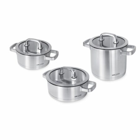 Vysokokvalitná nehrdzavejúca oceľ s matným povrchom vo vnútri aj vonku zaisťuje nadčasový dizajn, ktorý zvýrazní každú kuchyňu. Tiež sa ľahko čistí a je vhodný do umývačky riadu. AM COOK exclusive to berie veľmi vážne, a preto má tento hrniec integrovanú meraciu stupnicu. Sledujte svoje pochúťky pomocou nášho inovatívneho skleneného veka. To umožňuje varenie všetkých jedál so zatvoreným vekom, čím sa šetrí energia a varenie je rýchlejšie. Vďaka špeciálnej konštrukcii veka sa unikajúca para koncentruje na jednom mieste a potom sa dá ľahko odsať. Okolité silikónové tesnenie zaisťuje tesné uzavretie. S týmto inovatívnym systémom varenia už nikdy nebude v kuchyni hustý vzduch. Je to ešte lepšie, pretože všetky naše hrnce možno bezpečne používať v rúre až do teploty 180 stupňov. Užite si z dlhodobého hľadiska: Tento výrobok má záručnú dobu 20 rokov a ešte dlhšiu životnosť.