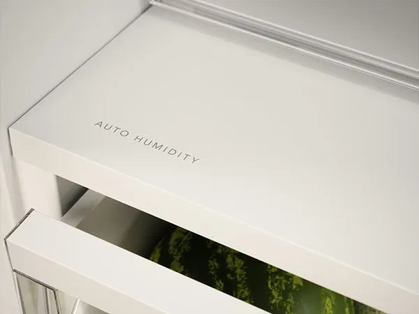Automatické riadenie vlhkosti je kľúčom k hygiene aj dlhotrvajúcej čerstvosti. V zásuvke na ovocie a zeleninu udržuje ideálnu úroveň vlhkosti. Membrána, ktorá sa ľahko čistí, sama reguluje vlhkosť, otvára sa pri nadbytku a uzatvára pri nízkej úrovni, aby zabránila vysychaniu alebo pokazeniu potravín.