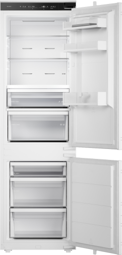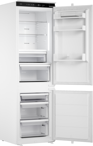 ASKO RBC276SND1, vstavaná chladnička s mrazničkou, sa ľahko ovládateľným dotykovým displejom a Wi-Fi pripojením pre pohodlné ovládanie prostredníctvom aplikácie ConnectLife. Chladnička je vybavená zásuvkami Nordic Fresh, ktoré sa hladko pohybujú po teleskopických výsuvoch a vďaka automatickej regulácii vlhkosti vytvárajú ideálne podmienky na uchovanie čerstvých potravín. Mraznička je vybavená technológiou No Frost, ktorá eliminuje potrebu odmrazovania.