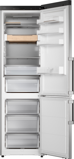 Napíšte námASKO RFC526RNBS1, voľne stojaca chladnička s mrazničkou so systémom slot-in, s farebným dotykovým displejom a Wi-Fi pripojením pre pohodlné ovládanie prostredníctvom aplikácie ConnectLife. Unikátne zásuvky Dura Fresh s individuálnou reguláciou teploty a automatickou kontrolou vlhkosti zaisťujú ideálne podmienky na uchovanie čerstvých potravín. Zásuvky v chladničke aj mrazničke sa hladko pohybujú po teleskopických výsuvoch a technológia No Frost eliminuje potrebu odmrazovania.