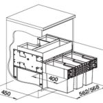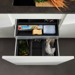 • Pri plánovaní treba zohľadniť výšku zabudovania košového systému, hĺbku drezu a z toho vyplývajúci min. rozmer pre spodnú skrinku.