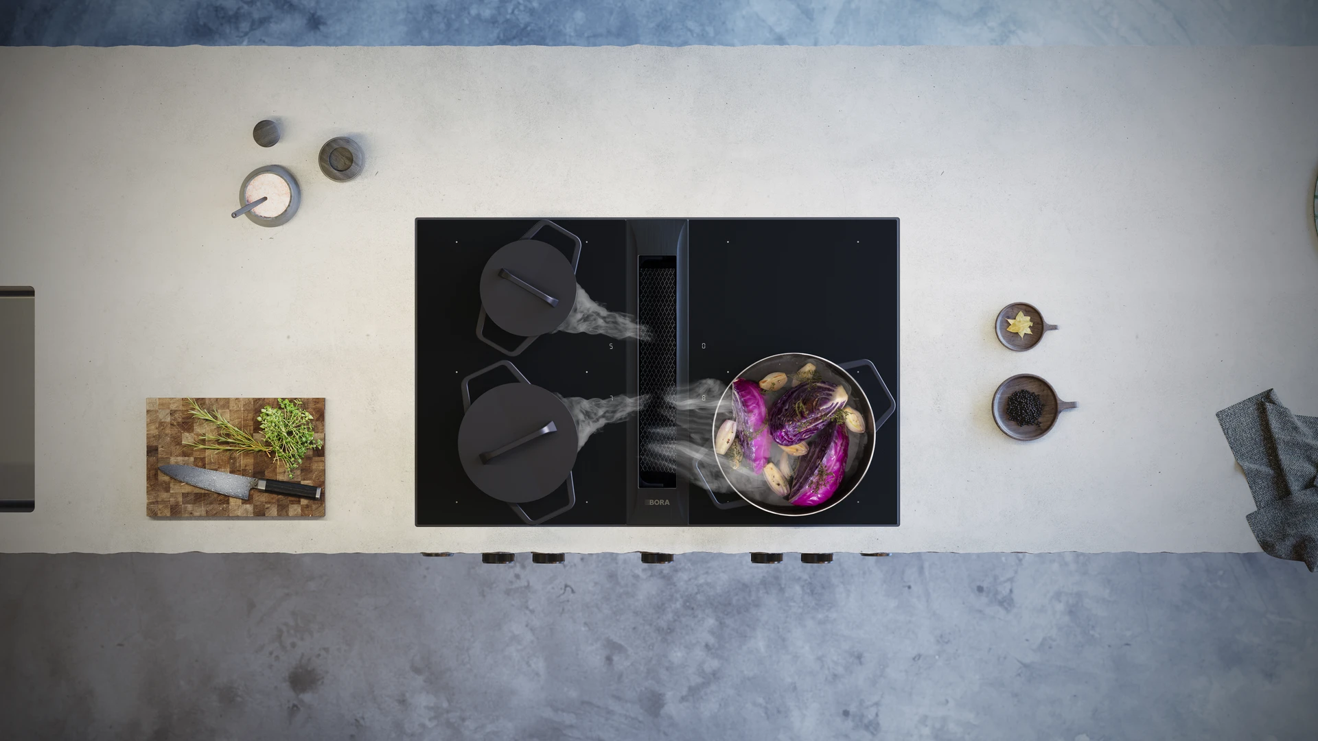 Spoločnosť BORA ponúka široký výber varných dosiek s celoplošnou indukciou až po plyn alebo Tepan gril z nerezovej ocele, ktoré je možné ľubovoľne kombinovať s odsávacím systémom. Bez problémov sú možné tiež kombinácie s jednou, troma alebo viac varnými doskami.