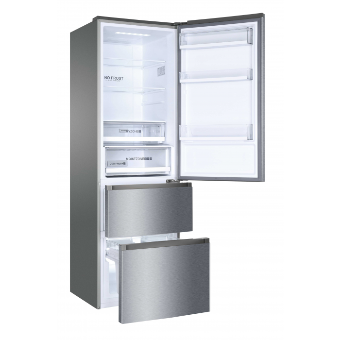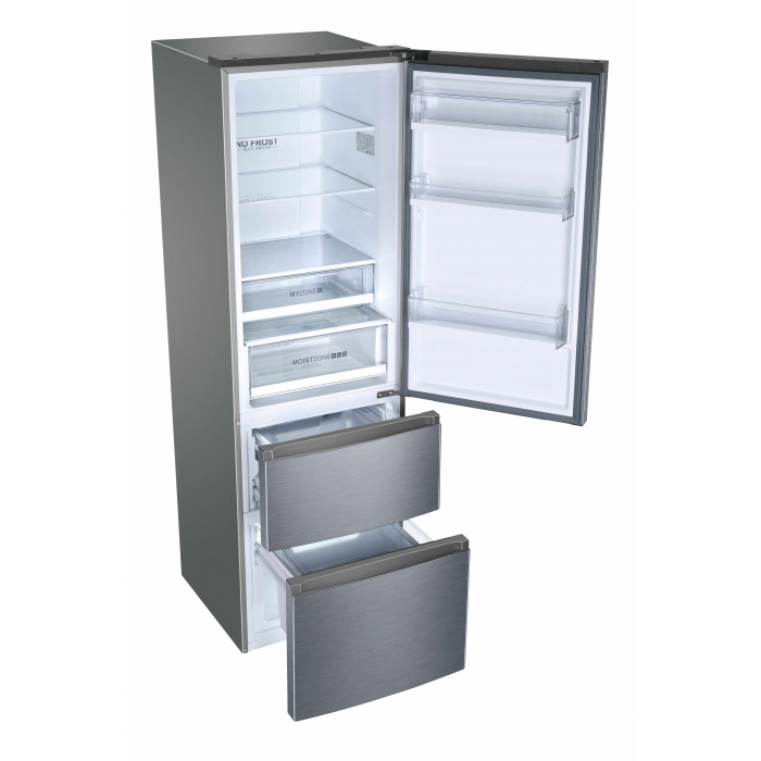 Voľne stojace, Trojdverové, No Frost, Svetlo Led, Trieda D, Strieborná, Š x H x V (mm) 595x677x1905