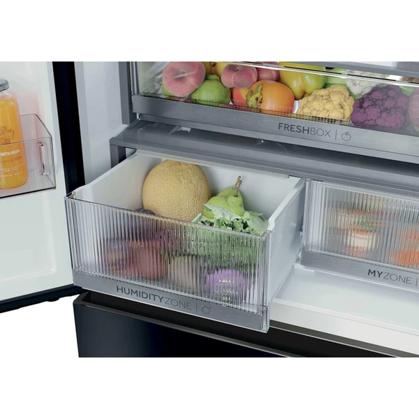 Praktická zásuvka Humidity Zone od Haier udrží vaše ovocie a zeleninu dvakrát dlhšie čerstvé. To sa deje vďaka technológii HCS (Humidity Control System), membráne z rastlinných vlákien, ktorá dokáže udržať a automaticky riadiť vlhkosť na 90%. Tým sa zabráni kondenzácii vody vo vnútri zásuvky. Súčasne s udržovaním vlhkosti v zásuvke na 90 % je možné, aby chladný vzduch cirkuloval, takže potraviny si dlhšie udržia svoje nutričné ​​hodnoty.