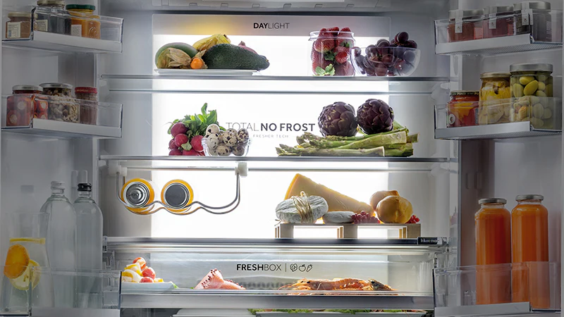Systém Haier Daylight LED osvetľuje obsah chladničky, takže je stále vidieť až na koniec každej poličky a do každého rohu. Vďaka tomu sa potraviny hľadajú oveľa lepšie, než kedykoľvek predtým, a to aj tie, ktoré sa používajú menej často. Vzhľadom na ohromné zlepšenie viditeľnosti umožňuje jasné svetlo tiež jednoduchšie dopĺňať a organizovať obsah chladničky. A vďaka šikovnému systému priebežného osvetlenia zostáva svetlo zo zdrojov LED mäkké a príjemné pre oči.