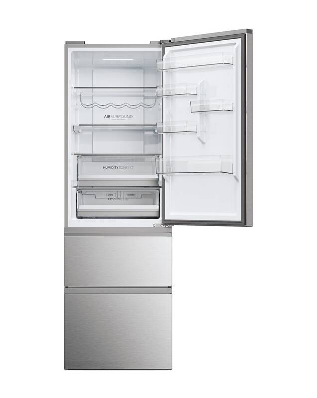 Chladničky Haier 3D 60 Series 5 so šírkou 60 cm sa vyznačujú pôsobivo navrhnutým systémom zásuviek v mrazničke, ktorý umožňuje nielen efektívnejšie využívať priestor pre mrazené potraviny, ale tiež zaisťuje rýchly prístup k celej mrazničke, čím sa ušetrí až o 30 % viac energie podobných chladničiek s mrazničkou umiestnenou dole. Technológie Fresher Techs® zároveň neustále upravujú podmienky, aby bolo zaručené zachovanie kvality potravín. Chladničky Haier 3D 60 Series 5 dokonale uchovajú potraviny dlhšie čerstvé aj vďaka špeciálnym zónam, ktoré regulujú teplotu a/alebo vlhkosť.