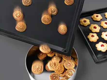 Čistenie hravo a jednoducho: Množstvo súčastí vašej rúry na pečenie Miele, napr. ohrevný priestor, plechy na pečenie a rošty na pečenie či vyprážanie, majú patentovanú povrchovú úpravu s jedinečnými nepriľnavými vlastnosťami. Odolné nečistoty sa dajú bez námahy odstrániť umývacím roztokom a špongiou.