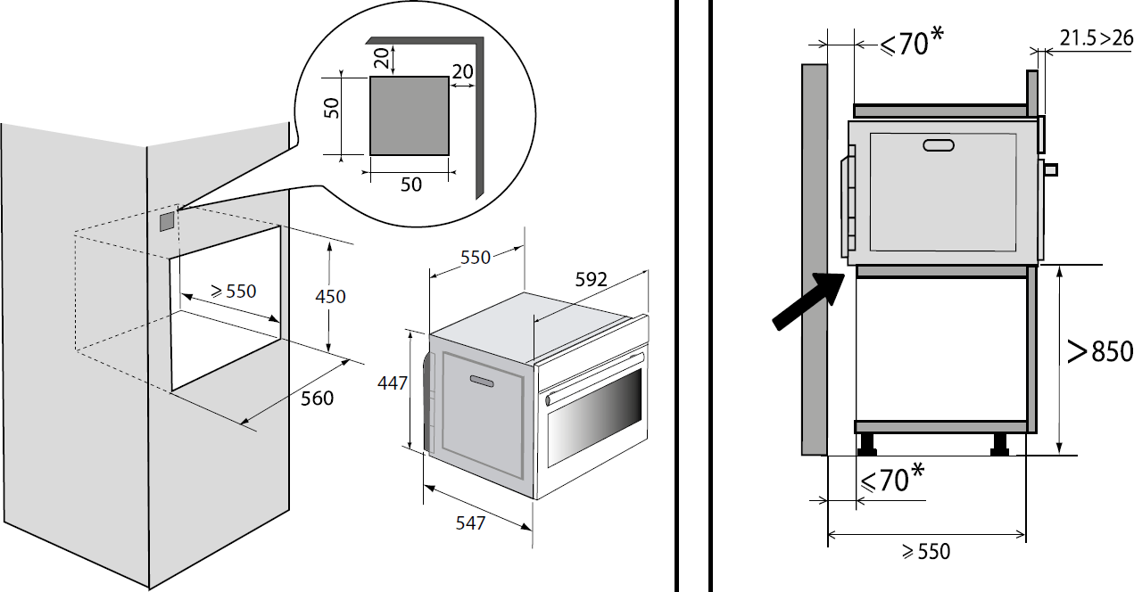 Rozmery otvoru na zabudovanie (V x Š x H): 45 x 56 x 55